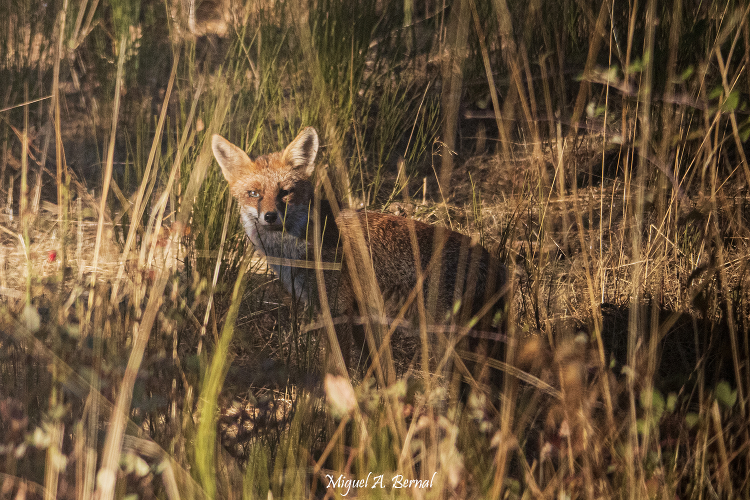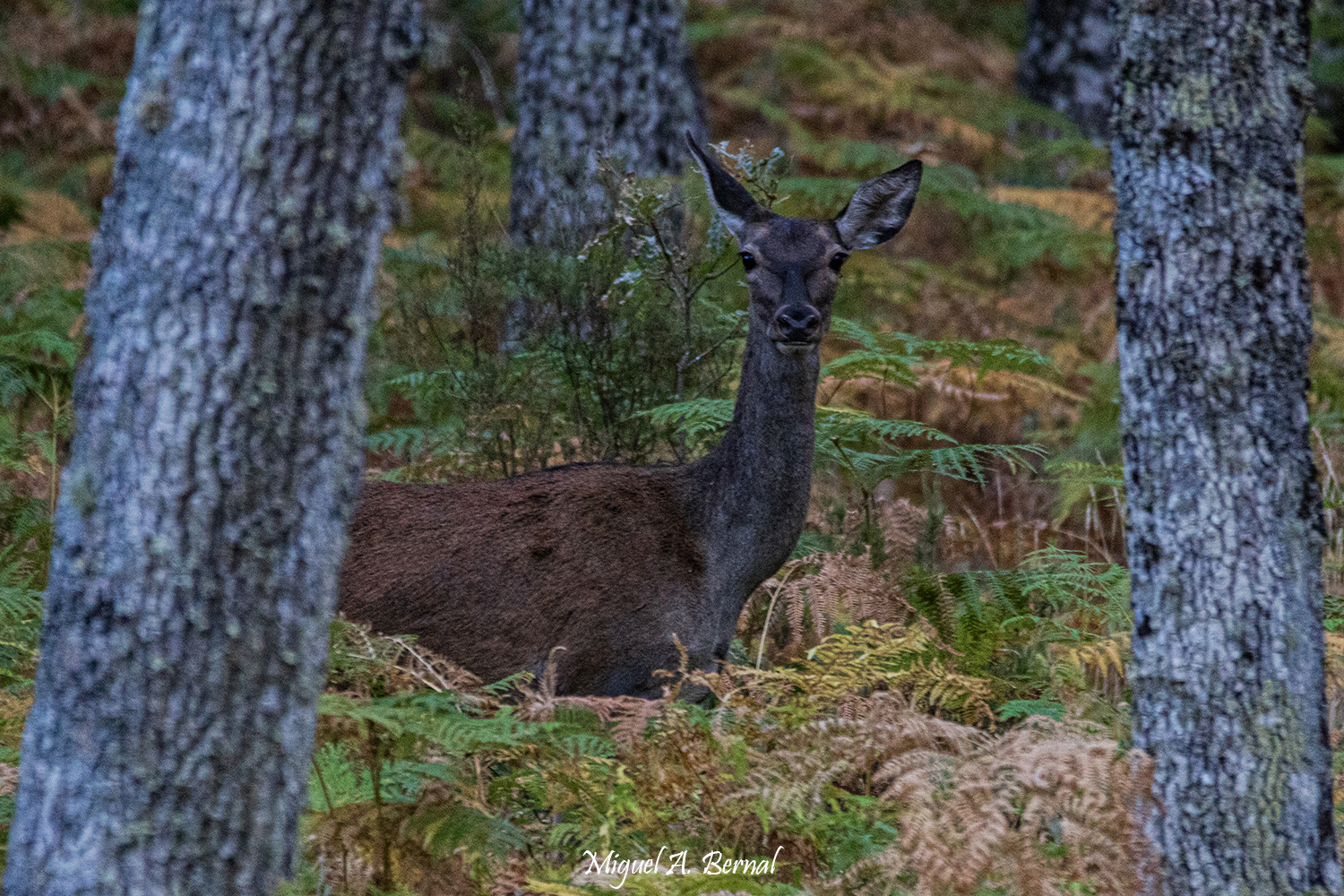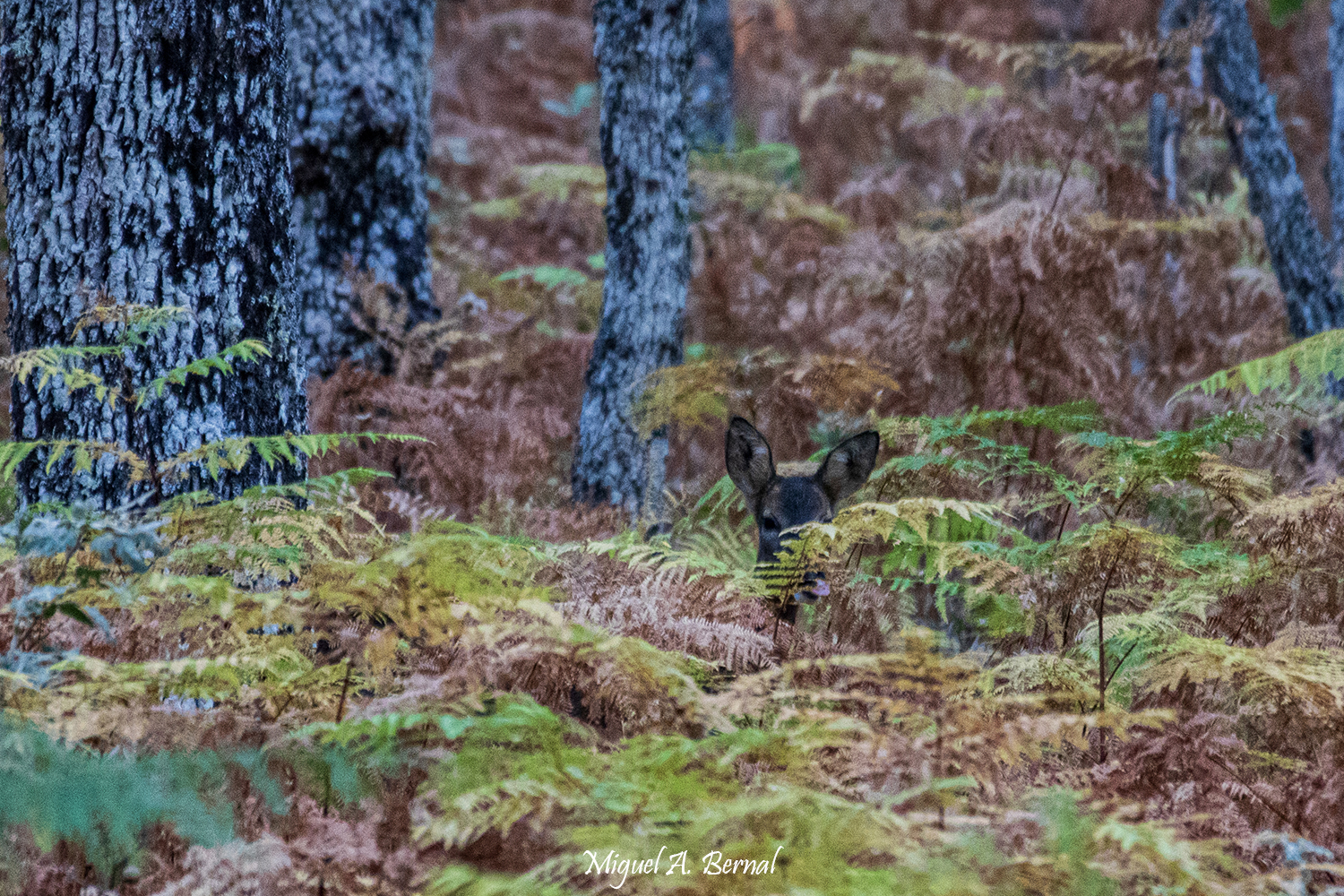 En primer lugar quiero enseñaros los encuentros acaecidos en los momentos de rececho y espera a nuestros amigos los ciervos. Por suerte, diferentes animales pude advertir desde el objetivo de mi canon, como fueron un zorro, varias aves o un corzo negro que parecía burlarse de nosotros desde los altos helechos otoñales.  Os dejo un breve resumen: