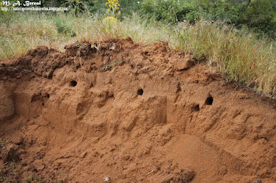 Entradas a los nidos de abejaruco realizadas en un talud.