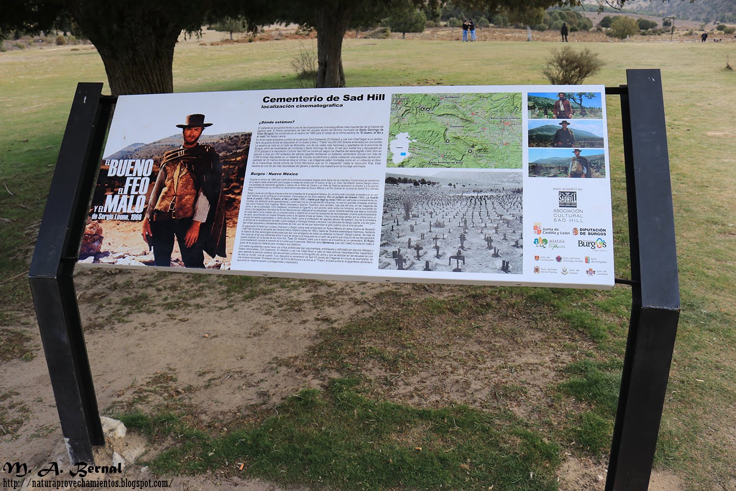 En esta nueva entrada del blog os acerco a un lugar de ensueño, un paisaje burgalés que emula a las agrestes montañas de la zona de Nuevo México en los Estados Unidos de América y que fue escenario de una gran película del género western. Es un emplazamiento de sabinares agrestes y calizos, con escasa vegetación, y que, se sitúa a la falda de la Peña de Carazo, Peña Villanueva o Mirandilla, situada entre los municipios de Contreras y Santo Domingo de Silos en Burgos. Se trata del recuperado cementerio ficticio de Sad Hill. Sí amigos, estamos hablando de; “El bueno, el feo y el malo”.