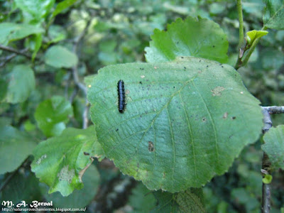 Tras ascender poco más de 500 metros nos encontramos El Haya. La mayoría de alisos (Alnus glutinosa) que surcaban el riachuelo que estábamos ascendiendo presentaban una plaga.