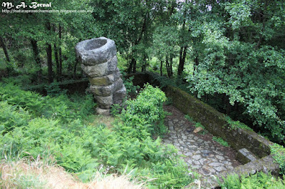 Haya de Herguijuela y puente entre el frondoso bosque.