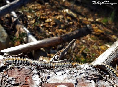 Como curiosidad me gustaría indicar que a la cabeza de la procesión siempre va una oruga hembra, al parecer mejor dotada.