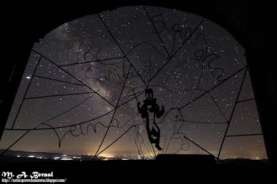 Vía Láctea en el mirador de Santiago, dando vista a las Hurdes (Cabezo, Las Mestas, Vegas de Coria, entre otros).