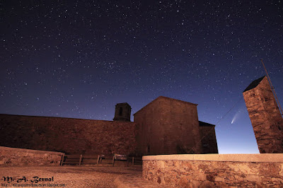 Vista del cometa Neowise en la entrada al Santuario de la Virgen de la Peña.
