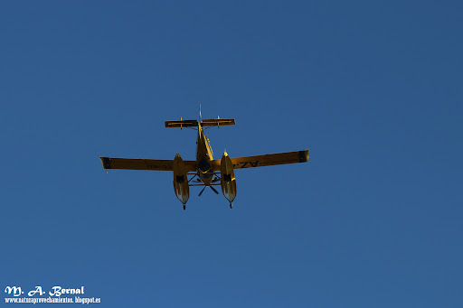 Avión anfibio sobrevolando incendio y torres de la luz.