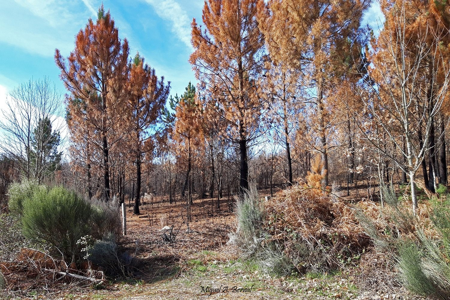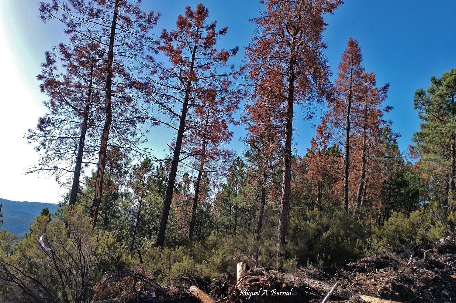 - El mayor daño ha sido por acumulación de madera en el monte hasta que se astillan los restos, en ese periodo se observaban, los bordes de los incendios, totalmente devastados con abundantes corros de pinos amarillentos por los escolítidos.