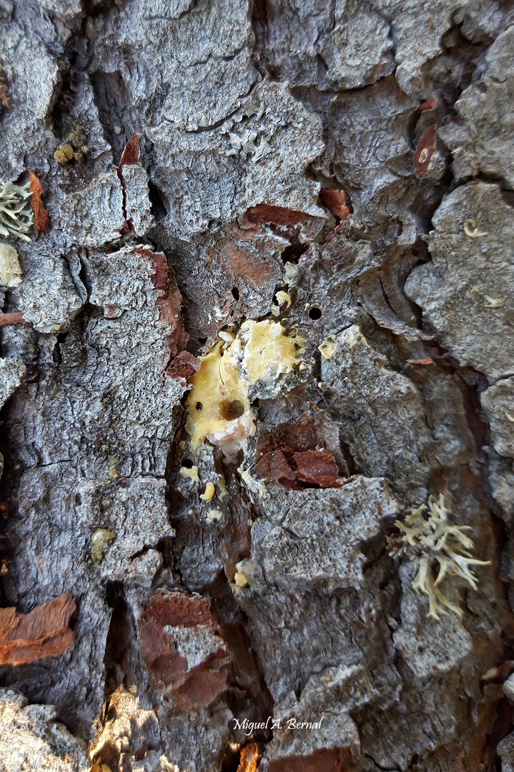 Es un pequeño escarabajo, que penetra en el árbol quedando una muestra de resina en el orificio, después pone los huevos, en áreas que se convierten en cámaras, de las que saldrán los futuros «destructores» realizando unas galerías muy características en los pinos