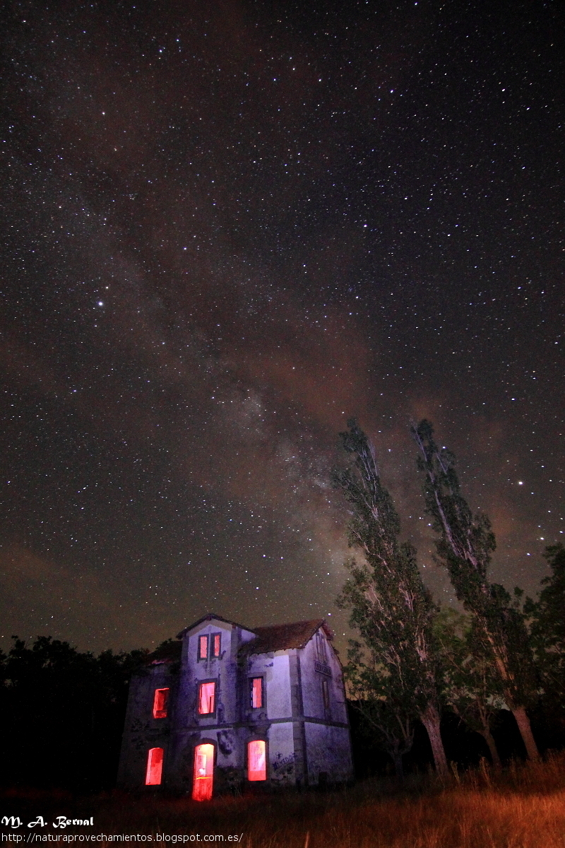Tras la realización de la foto circumpolar nos dirigimos a la trasera, orientada al sur con el fin de poder obtener una buena imagen de la vía láctea que se situaba sobre la edificación.