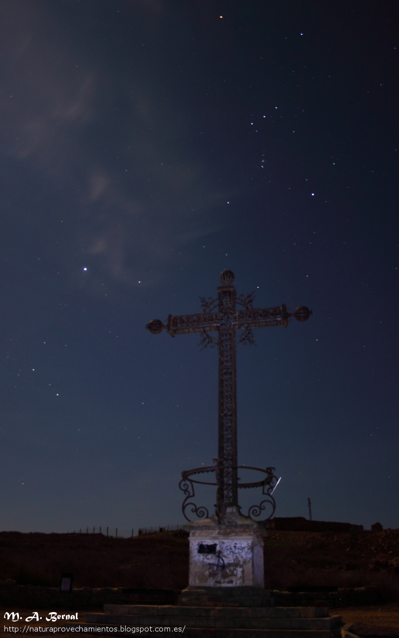 Cruz metálica de los caídos. Sobre ella en la parte derecha se observa la constelación Orión.