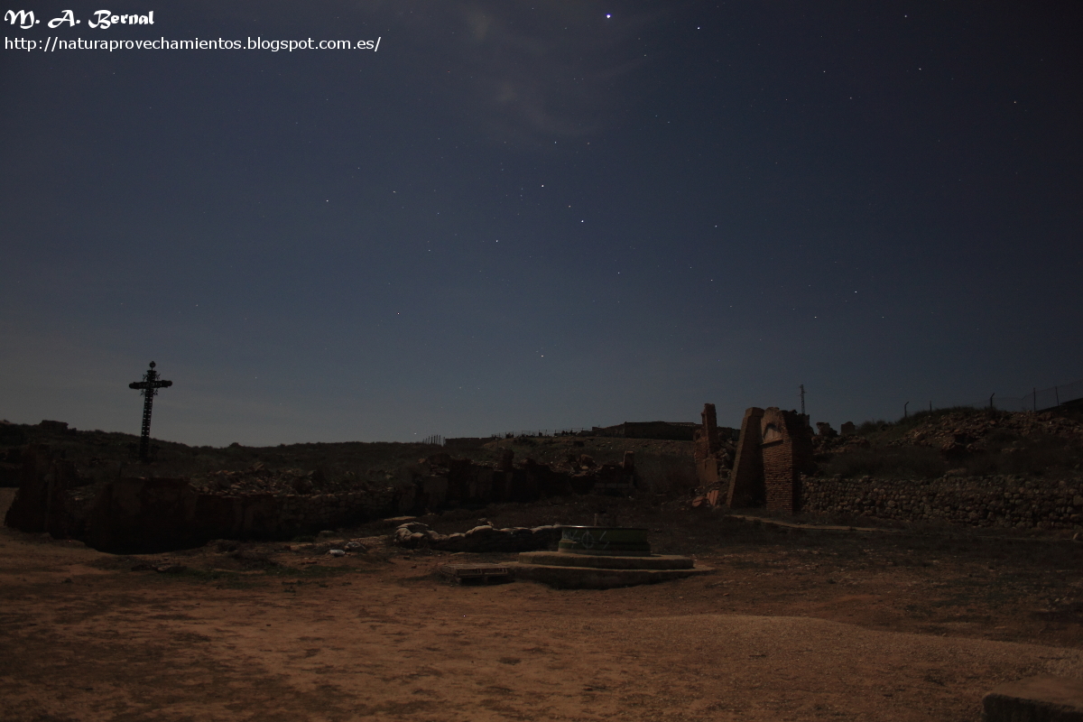 Cementerio – pozo del Viejo Belchite. La gracia de la noche hizo que la constelación Orión se situara sobre él.