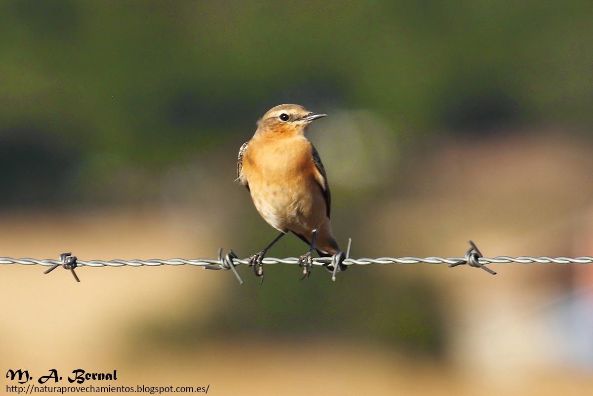 Collalba rubia (Oenanthe hispánica) sobre alambre.